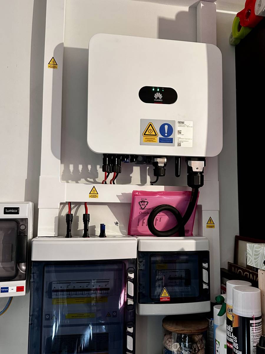 Ces panneaux photovoltaïques sont couplé à un onduleur Huawei 10K LC0. Celui ci possède une fonction batterie qui peut être utilisée ultérieurement.